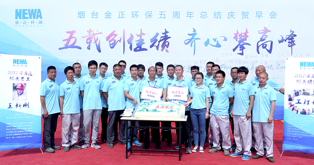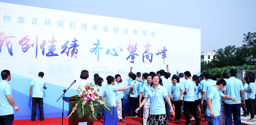 2017年7月5日,是金正環(huán)保五周歲的生日,金正環(huán)保全體員工舉辦了簡單而隆重的五周年總結(jié)慶賀早會(huì)。