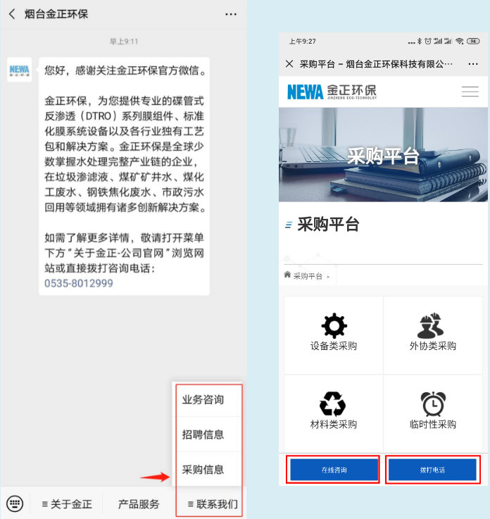 打開手機微信,添加公眾號“煙臺金正環保”;
