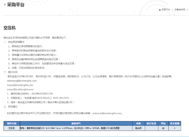 供應商快進來!金正環保采購信息平臺正式上線啦!