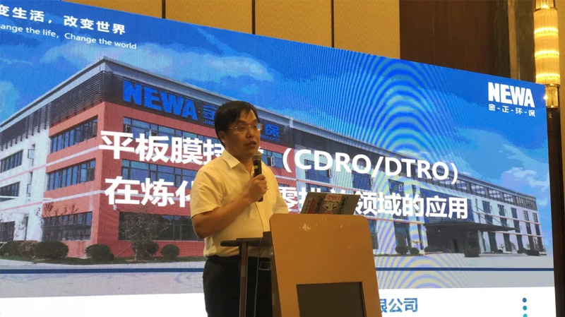 會上,金正環保商務技術副總裁姜新春針對石油煉化廢水處理作了《平板膜技術在煉化廢水零排放領域的應用》的主題報告。報告系統講解了金正環保在煉化廢水零排放領域最新工藝路線及解決方案,內容深入淺出,數據豐富詳實,受到與會人員的廣泛關注。報告結束后,姜新春與客戶進行了技術答疑和商務洽談。