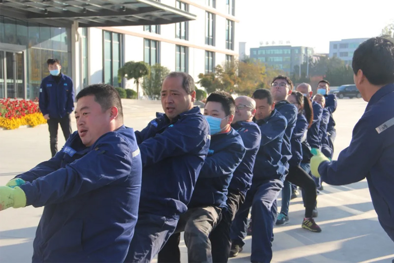 為豐富廣大職工的職場生活,增進團隊合作,展示金正人的蓬勃朝氣與競技熱情,11月3日-10日,由人力資源部組織的2020年度趣味拔河比賽分4天在公司產業園內舉行。比賽分多向拔河、單人對戰和團隊拔河,共有100余名員工分成8支隊伍參加比賽。