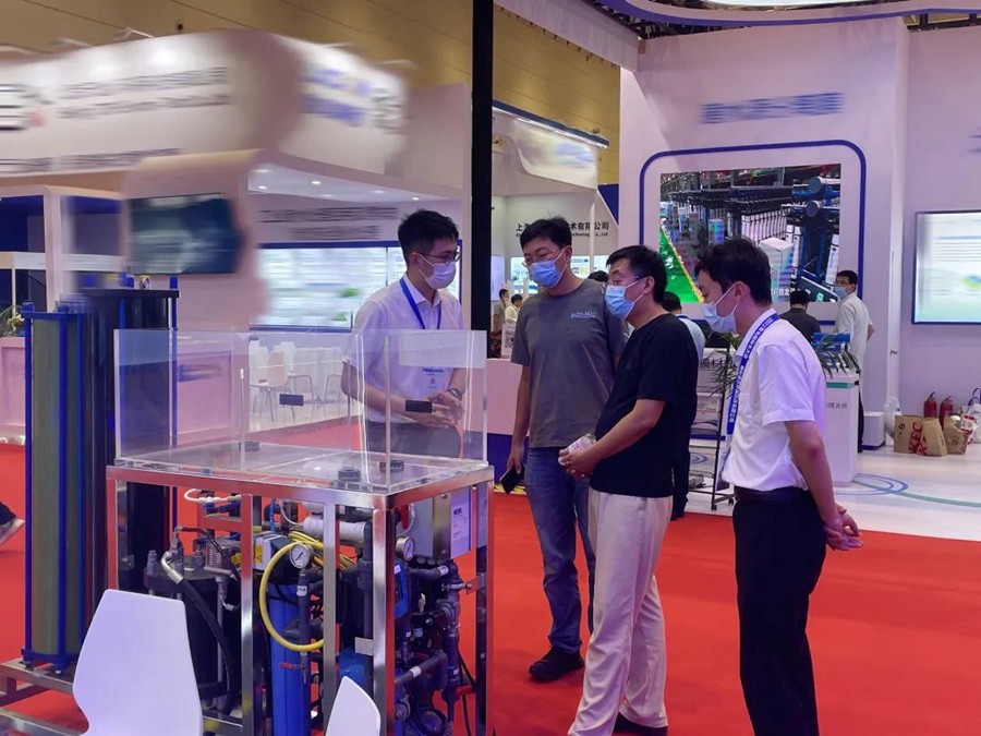 本次展會(huì)展出的專利膜組件-100barDTRO膜組件、CDRO膜組件、小型海水淡化設(shè)備等水處理設(shè)備受到與會(huì)人員的高度關(guān)注,在場(chǎng)的工作人員與來訪客戶在產(chǎn)品技術(shù)亮點(diǎn)、解決方案成本優(yōu)勢(shì)、合作意向等諸多方面一一進(jìn)行了深入的溝通和交流。
