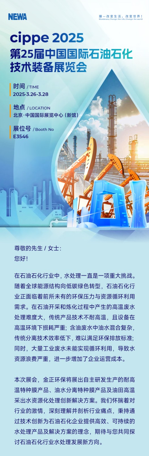 邀請函丨煙臺金正環保邀您相聚cippe2025北京石油展